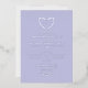 Muted purple wedding invitation with silver foil fonts and greenery. Monogrammed silver foil wedding invitation with your initials inside a heart-shaped wreath of greenery. Purple and silver wedding invitation with a beautiful hand-drawn greenery wreath in a heart shape.