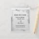 Personalized Elegant Silver Save The Date Card. The design with features silver leaves, silver watercolour elements in white. View matching items in the "Elegant Silver Leaves Wedding" collection.
