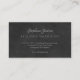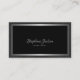 Classy luxury vintage style faux silver calligraphy business card with a faux silver metallic frame over a black elegant background. ++++++++++++ Suitable for exclusive beauty salon, luxurious boutiques, interior designer, makeup artist, hair stylist.