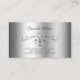 Make a lasting impression with this elegant and luxurious business card design featuring pretty silver ornate corner borders with cute hearts on a shimmery silver background.