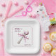 Elegant Silver Pink Rattle Bow Baby Shower Paper Plate