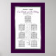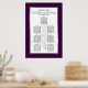 Add your own special touch to this elegant design featuring modern script, purple and black text including a starry silver Christmas tree with a metallic silver frame with a purple background. This seating chart design features the bride and groom's names along with the words "Eat, Drink, and Be Merry" and "Please Find Your Seat". Templates are provided for up to seven tables with up to 8 or 9 names per table.