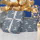 Classically elegant Christmas holiday gift wrap featuring a silver reindeer silhouette pattern over a dusty blue background. Perfect decorative gift wrapping paper for all your holiday gifting.