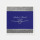 Luxury, modern, elegant glitter silver and royal blue wedding napkins with beautiful rope heart and simple calligraphy script.