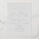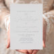 This simple, modern wedding invitation features real silver foil text on a pale grey background, with the words "the Wedding of" in elegant handwritten calligraphy script. Add the names of the bride and groom in serif and the wedding details in sans serif font. The reverse side is solid grey.