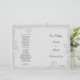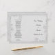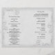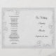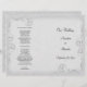 This design features a muted silver patterned background accented by elegant art deco inspired scroll work. Shown here as a customisable wedding program, the text on this versatile design can be personalised for any occasion. We have a variety of colours available!