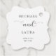 Minimal and elegant wedding favour tag with faux silver calligraphy script. Customisable
