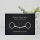 This invitation has an illustration of a silver loose ring snaffle bit that is highlighted with silver foil, suitable for a horseback wedding, party at your farm, or an event for a horse business or charity.