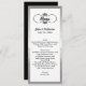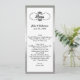 Long and skinny wedding table menu done in white, with a silver tone frame around the outside and a vintage looking black swirl text area, at the top. Personalise all the text to suit your wedding reception menu. Lovely addition to your wedding reception.