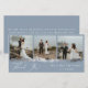 Elegant Silver Vein overlay, dusty blue, multi-photo wedding thank you card. Customise text font style, colour and size.