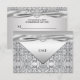 Elegant silver wedding anniversary party RSVP with silver diamond trim. This beautiful silver 25th wedding anniversary party RSVP card design works well as an invitation to a birthday party, cocktail party, retirement party, and any other special occasion. Customise with your choice of font style and font colour. This is a flat printed design with no real jewels, ribbons or any added parts or pieces.