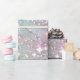 The glitter and foil elements are simulated in the artwork by the Creator. These elements will not be used in the making of this product.