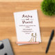 This elegant comic book-style wedding acrylic invitation is perfect for a modern wedding. The retro design features a vintage bride and groom illustration and black calligraphy on a comic book-themed background.