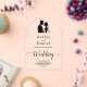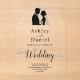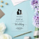 This elegant black-and-white arch acrylic wedding invitation is perfect for a modern wedding. The simple design features elegant black calligraphy and a bride and groom illustration on a clear transparent background. The invitation card includes the wedding details on the back instead of paying for a separate enclosure card.