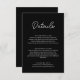 This elegant black and white wedding details enclosure card is perfect for a modern wedding. the simple design features elegant white calligraphy on a black background.