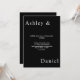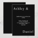 This elegant black and white wedding invitation is perfect for a modern wedding. the simple design features elegant white calligraphy on a black background.