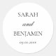 Elegant Simple Black & White Wedding Envelope Classic Round Sticker