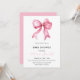 This adorable invitation features a watercolor pink ribbon bow, isolated on a white background and soft lighting, it's an elegant style