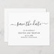 Simple non photo budget wedding Save the Date with a clean and minimalist design featuring an elegant touch with "save the date" in script with swashes. A modern black and white Save the Date without pictures that coordinates beautifully with any style of wedding.