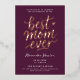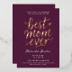 This stylish anniversary | birthday invitation showcases a refined gold foil unique calligraphy design featuring the phrase “Best Mum Ever” on a sophisticated plum burgudy background. The layout blends modern minimalism with timeless elegance, while the classic typography beautifully highlights the mum’s name with white. Perfect for a stylish woman anniversary party, this template is easily customisable, making it a seamless choice for your special day.