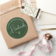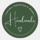 Elegant Simple Calligraphy Handmade Heart Green Classic Round Sticker