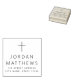 Elegant return address rubber stamp featuring a simple, thin Christian cross and your name and return address.