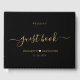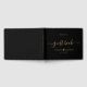 Elegant Simple Gold Script Wedding Black Guest Book Personalised. Wedding Guest Book in black and gold. Features modern „guest book” text in hand lettered swash tail font calligraphy, wedding date and couples first name with love heart motif/shape. Easy to customise with your information. It great for wedding or anniversary day.