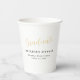 An Elegant Simple Gold Script Graduation white paper cups with the word "Graduate" in gold script font, with name, school, and class of year.