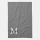 Modern Stylish Elegant Slate Silver Grey White Monogram Family Name Kitchen Towel