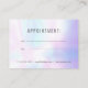 Elegant simple iridescent appointment card, personalise with your name and company contact details. Perfect for a wide range of professions including; dental care, therapists, consultants, accountants, solicitors, beauticians, hair and beauty consultants, spas, stylists, makeup artists, nail salons, to name a few! Designed by Thisisnotme©