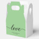 Designed with a modern script font, the word "Love" adorns these favour boxes, adding a touch of sophistication and romance to your wedding decor. The combination of sage green with white accents creates a trendy and chic aesthetic that complements a variety of wedding themes and colour schemes.