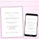 This modern, minimalistic wedding invitation features an elegant script front. It plays with the simplicity of a black and white typography design, adding just a hint of peach colour. In the back of the invitation you can add your wedding website information as well as a QR code for your guests to scan. It's the perfect choice for couples who appreciate clean and modern elegance.