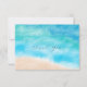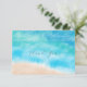 A simple, elegant, modern script wedding thank you card featuring a painted watercolor background of a beach landscape in aqua teal. A classy choice for a beach wedding, destination wedding or beach elopement wedding.