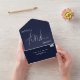 This elegant navy blue wedding invitation is perfect for a modern wedding. the simple design features elegant white calligraphy on a blue background.