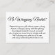 If you're hosting a no-gift-wrap display shower for a bride-to-be, this simple, elegant card could be the choice for you. Using an elegant script font, I first added a header that reads "No Wrapping Needed!" on the front, and "Gifted with Love, From:" for the gift tag side. A template field was set up to offer instructions for guests not wrapping their present; please feel free to change the wording if needed. All fonts and colors can be modified as you see fit.