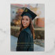 An Elegant Simple Script 2 Photo Gold Foil graduation thank you card with script font, full bleed portrait photo on the front with name, school, and class of year. The back has a second photo framed with a thin black line, customisable thank you text with ample room for additional text and a hand-written signature.