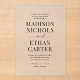 This elegant and modern wedding invitation features unique calligraphy script paired with stylish type. The black and white colour scheme is perfect for any event, formal or casual.