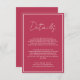 This wedding details enclosure card is the perfect way to share all your wedding details in style. The minimal design features an elegant typography on a vibrant viva magenta background, making it a beautiful addition to your special day. This customisable card provides all the information your guests will need, including accommodations, transportation, and your wedding website. The simple design can be customised in any colour, allowing you to create a personalised touch for your big day. With its sophistication and versatility, this wedding details enclosure card is the perfect choice for the stylish and modern bride and groom.