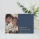 Elegant Simple Stylish Navy Blue and Gold Photo Thank You Card