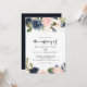 This elegant simple unique winter floral the wedding of invitation is perfect for a modern wedding. The design features beautiful hand-painted dark blue, blue, navy, pink , blush, gold flowers and green foliage, bunched into elegant bouquets.