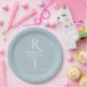 Elegant Simple White Grey Monogram Wedding Paper Plate
