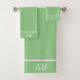 Elegant simple stylish white monogram on green Bath Towel Set. Monogram only on one side!