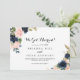 This elegant simple winter floral calligraphy elopement announcement has a beautiful modern design. The design features beautiful hand-painted dark blue, blue, navy, pink , blush, gold flowers and green foliage, bunched into elegant bouquets.