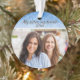 This elegant 2 sided 2 photo sister Christmas ornament features blue glitter and two of your own photos of you and your sister, and the quote, "My sister, my friend" in trendy hand lettered script, and the year. Easy to customise with your own photos and is the perfect gift to give a special sister!