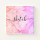 Personalised Pink Rainbow Marble Black Script Sketchbook with Your Name in Elegant Hand Lettered Font Typography. Elke Clarke© Add you name or monogram or text using the customise menu.