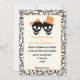 Elegant skulls Halloween orange wedding invitation, featuring a black skull couple bride and groom on ivory background and a skull pattern border. The groom wears an orange hat and the bride an orange bow.