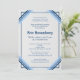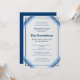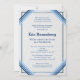 This elegant yet modern invitation is ideal to celebrate a Bar Mitzvah with style and class. Each corner is decorated with slanted lines in different shades of blue. A frame in a blue gradient ties the design together. The background has a trendy textured background. Add your own wording and event details.