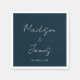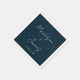 Modern minimalist wedding cocktail napkins featuring white calligraphy script with slate blue background. Designed to coordinate with our Modern Slate Blue Wedding Collection.