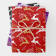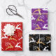 This beautiful Christmas wrapping features a white and gold reindeer silhouette pattern on a purple, red, and black background. Perfect for the holiday season, this stylish and festive design will bring joy to your loved ones. Get yours today and make your presents extra special!