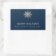 Enhance your holiday packages, gifts, and more with this Elegant Snowflake Holiday Sticker. Adorned with a dazzling metallic snowflake against a rich navy blue background, this rectangular sticker exudes seasonal charm. The front features the message "Happy Holidays" and "Warm wishes this holiday season," adding a heartfelt touch to your packages. With its festive design, this sticker is perfect for adding an elegant accent to your holiday wrapping, envelopes, and decorations. Spread the joy of the season with every sticker you apply, making your presents truly stand out in style.